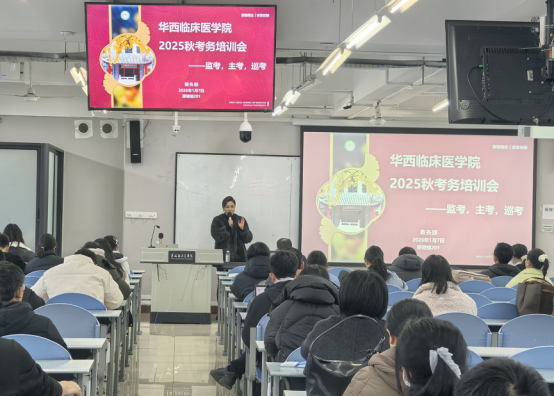 1月7日,我院在厚德楼202教室组织召开2025-2026学年秋季学期本科课程期末考试考务培训会,全院主考、监考、巡考教师合计约130名教师参加本次培训。